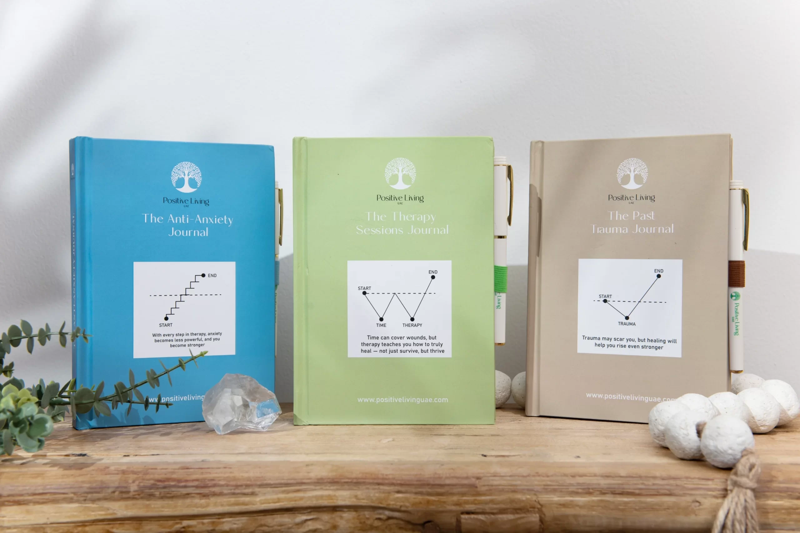 Together, the Therapy Sessions Journal, the Past Trauma Journal, and the Anti-Anxiety Journal form a complete toolkit to help you: